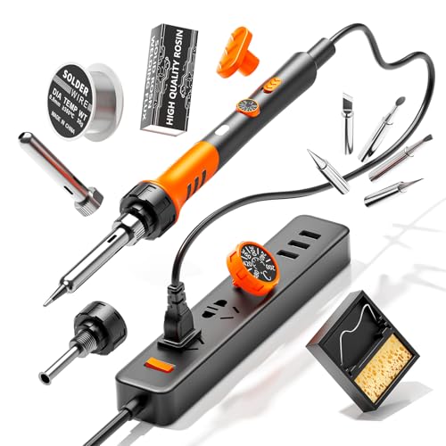 60W Adjustable Temperature Soldering Iron Kit – 9-in-1 With 5 Tips, Solder Wire Stand for Soldering and Repair
