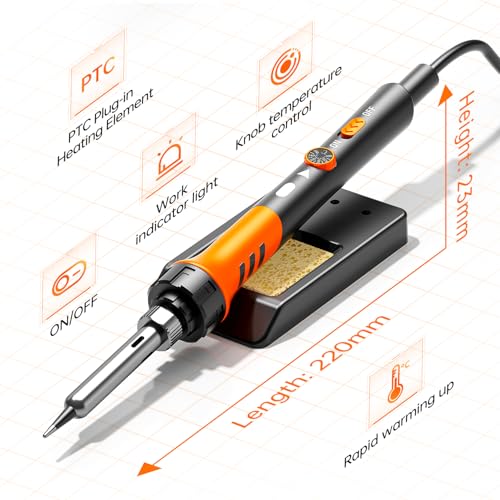 【Electronics Repair Made Easy】The Electric soldering iron is equipped with an on/off switch for energy-saving and safe soldering. It operates at 110V and 60W, with adjustable temperature control for quicker warm-up.