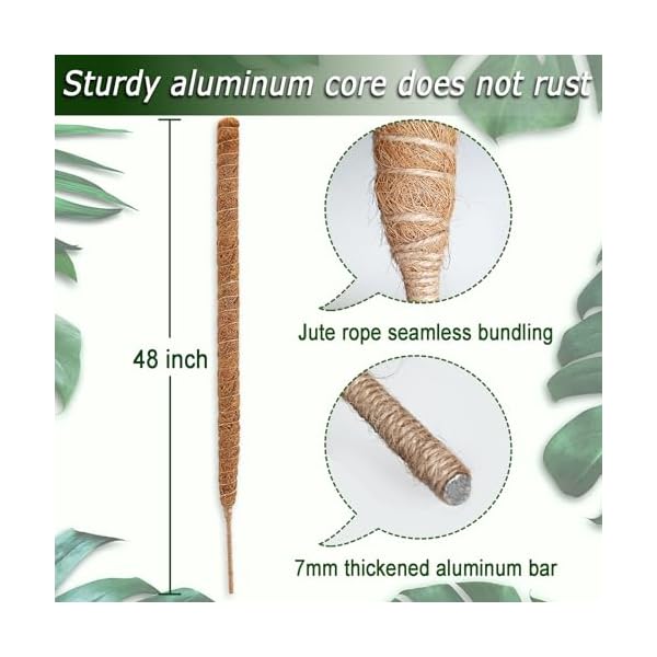 HIGH QUALITY MATERIAL: Soupiar moss poles are made of natural fiber material derived from coconut shells, ideal for growing plants to attach new air roots and help plants retain moisture and nutrients. The inner core of the bendable moss pole is made of solid aluminum bar, which is strong and rust-free and easy to adjust the shape.