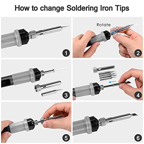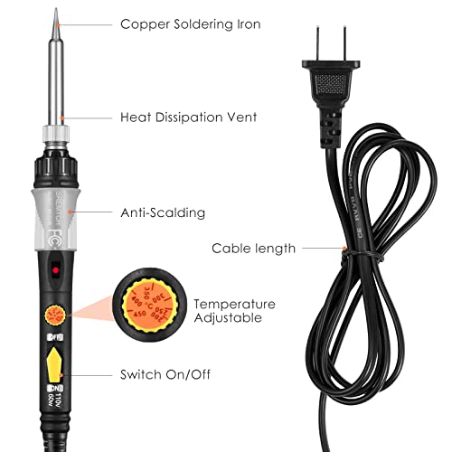 【What you get】SREMTCH soldering iron kit includes: a 60W portable soldering iron, 5 multiple soldering tips, 17g soldering wire and a soldering iron holder. Each soldering iron kit is rigorously tested, one year warranty, a replacement/refund will always be stress-free, our excellent customer will support your purchase process.