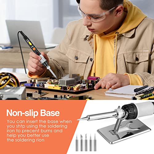【Safety design】 Equipped with ergonomic design handle, comfortable to hold and non-slip. The use of rubber insulating materials improves the safety of soldering irons.